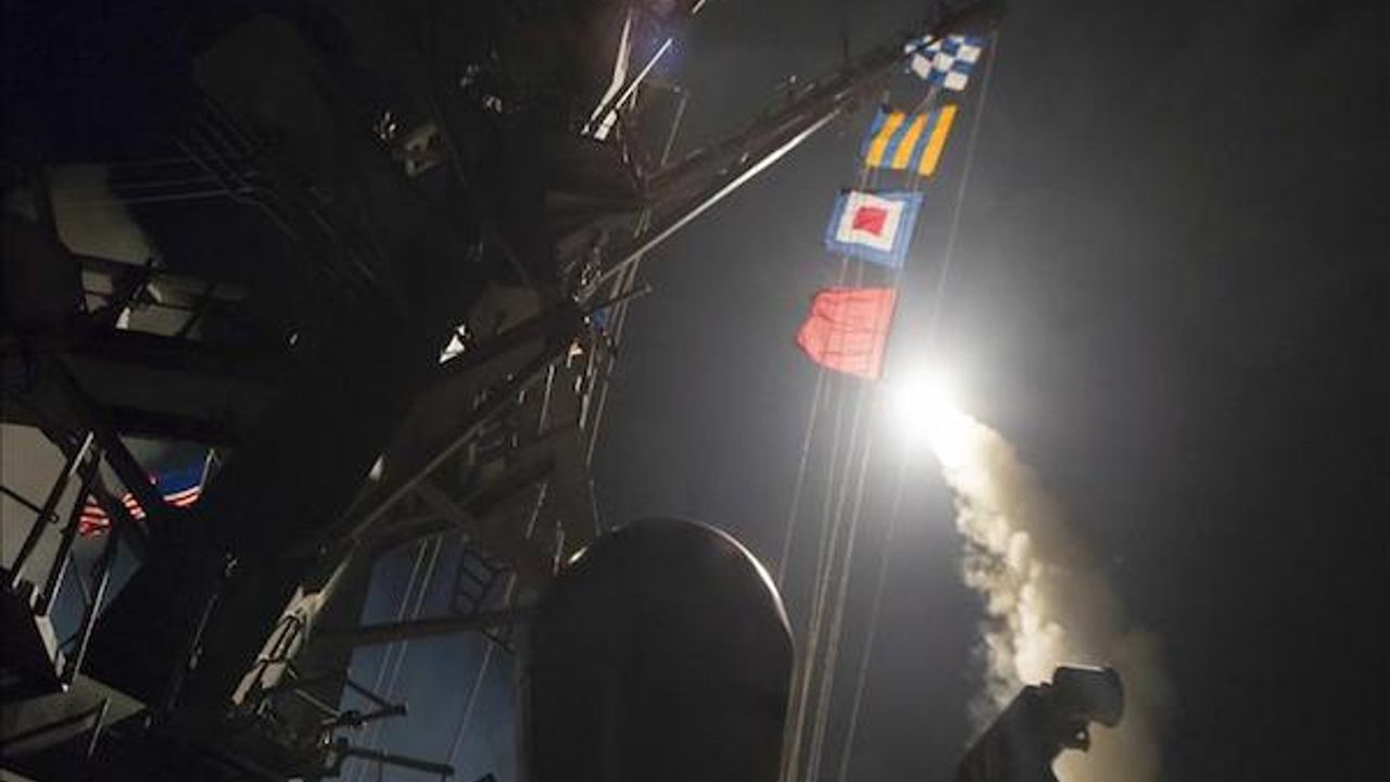 The U.S. fired 59 Tomahawk missiles at a Syrian military airbase American officials believe was used to carry out a deadly chemical attack Tuesday, the Pentagon confirmed. The chemical attack killed more than 100 civilians and injured around 500 others in Khan Shaykhun town of the northwestern province of Idlib, and led to widespread international outrage. The U.S. missiles were fired from two U.S. destroyers in the eastern Mediterranean and hit the airbase at approximately 3:45 a.m. Syrian local time Friday (0045GMT). Aircraft, hardened aircraft shelters, petroleum and logistical storage, ammunition supply bunkers, air defense systems, and radars were targeted, the Pentagon said.