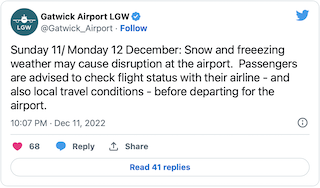 "The captain wanted to de-ice the wing," he said. "But by the time the ground crew had come over to do that and the plane was ready, the runway shut and we had to return to stand." However, he said the crew had been great and made the "whole thing a lot better, or at least as good as can be for this kind of situation".