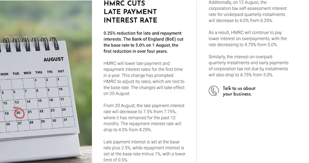 HMRC CUTS LATE PAYMENT INTEREST RATE