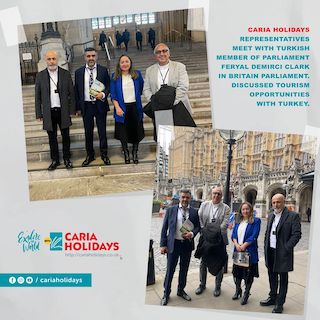 AVRUPA TIMES/LONDON-Engin Sertoglu and Selahattin Pinarbasi, directors of Caria Holidays, visited MP Feryal Demirci Clark from Turkey at the British Parliament. They discussed problems arising after the COVID pandemic, problems of Turkish speaking community in England and demands of the people, upcoming summer holidays and holiday plans, hardships of the Turkey specialist tourism businesses, economic and cultural value added to the tourism world by Turkey.They also talked about general problems of Turkey and neighbouring countries in tourism along with 2022 plans and projects carried out by Caria Holidays.