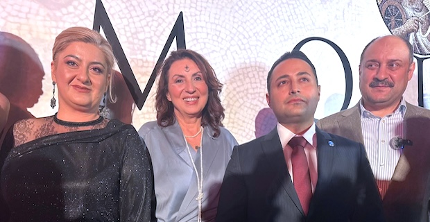 Merve Ofluoglu, Head of the Municipality Culture Department, Saadet Turkmen, Fashion and textile expert and producer, Halil Sert, Deputy President of the International Diplomats Association (DMW) with Mayor Gülpınar.