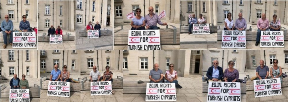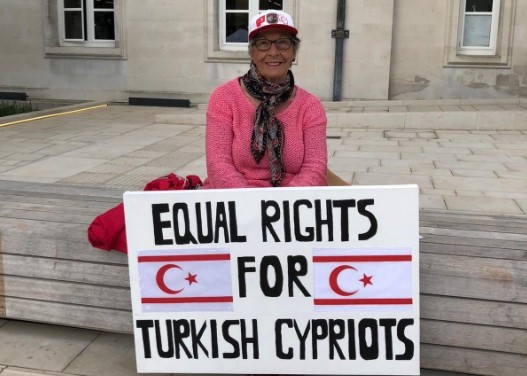 Council of Turkish Cypriot Associations : "Some members of a lobby group from Embargoed! and BTCA then came up with the idea of a weekly vigil at Fellowship Square, outside LBWF Town Hall, and that is where we come in. ‘We’ are Nejla and James Clements, General Secretary of Konsey-CTCAUK and Treasurer of Embargoed! respectively; two retired teachers. We initiated a two-hour weekly vigil from the 1st of April 2022, pending a legal case to be raised on this matter. Our plan was to sit with a placard demanding equal rights for Turkish Cypriots, speak with passers-by and hand out leaflets, which is what we do. This is generally timed to coincide with the weekly council committee meetings in order to ‘nab’ councillors on their way in to these meetings.Although we find this time consuming, it is now built into our weekly schedule and we feel good about raising the profile of our community. As the months have passed, we have become familiar to many members of the council security and administative staff, with whom we feel we have cordial relations, even though a respectful degree of formality remains. As for the passers-by, we have spoken to several councillors, who have generally shown support for our cause, some academics who showed a deeper intellectual interest, a number of Turkish and Greek Cypriots, and many other individuals from the general public who also voiced support for what we are trying to achieve, which is equal rights for British Turkish Cypriots. We plan to continue with the vigil until an appropriate legal case can be raised and action taken."
