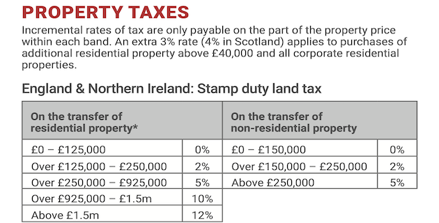 AVRUPA TIMES/LONDON-Incremental rates of tax are only payable on the part of the property price within each band. An extra 3% rate (4% in Scotland) applies to purchases of additional residential property above £40,000 and all corporate residential properties. England & Northern Ireland: Stamp duty land tax. On the transfer of residential property*. On the transfer of non-residential property. * First-time buyers pay nothing on the first £300,000 for properties up to £500,000.
