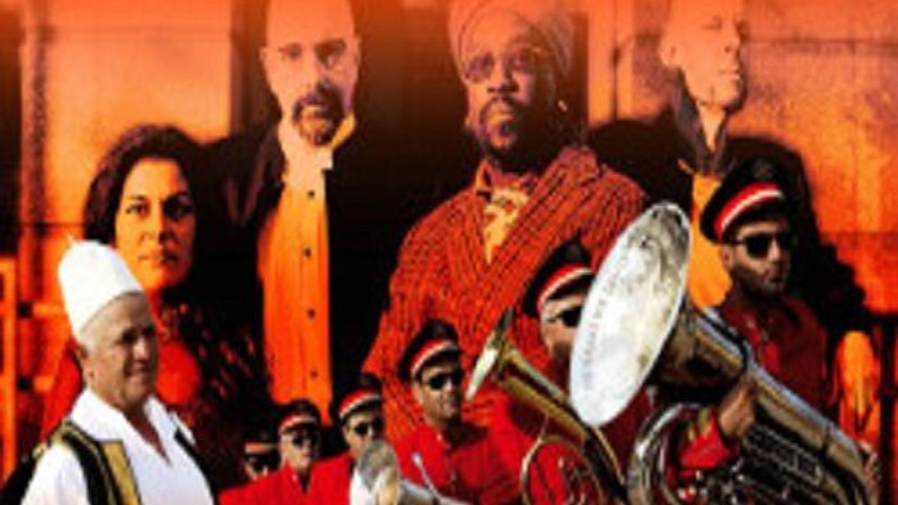 A live and kicking BALKAN BRASS SOUNDCLASH! as Albanian Army brass band FANFARA TIRANA Tirana with 71-year-old folk singer Niko Zela meet fusionists TRANSGLOBAL UNDERGROUND on stage hot from touring European summer festivals.