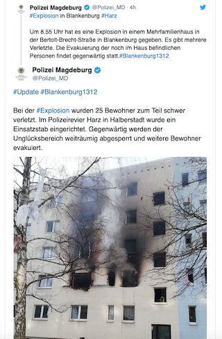 Magdeburg police said on Twitter that the explosion happened at a residential building at about 8.55 a.m. local time (0755GMT).