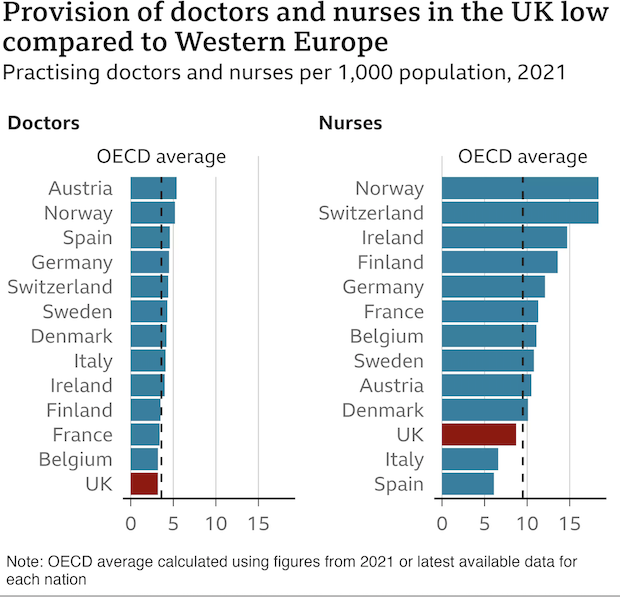 Currently, half of new doctors and nurses have to be recruited from abroad as the UK supply route has struggled to keep up with demand. One out of every 10 posts remains unfilled - more than 110,000 vacancies. And without action, this could rise to 360,000 by 2037, modelling for the plan suggests.