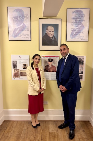 TWPA President Seyyare Beyzade (left) and CTCA President Kenan Nafi beside a photo of Wood Green hero Patrick Cengiz Azimkar, part of TWPA’s permanent exhibition devoted to the Turkish Cypriot role in World War 2 and other conflicts.