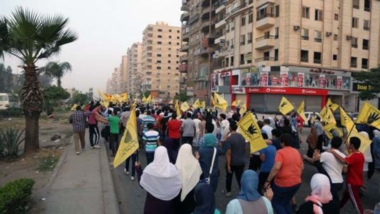 Supporters of ousted president Mohamed Morsi staged demonstrations Thursday morning in parts of Egypt to commemorate one year since security forces violently cleared two major pro-Morsi protest encampments in Cairo's Rabaa al-Adawiya and Nahda Squares. The protests came in response to an earlier call by the National Alliance for the Defense of Legitimacy, Morsi's main support bloc, for an "uprising" against the military-backed government on the first anniversary of the killing of hundreds of Morsi supporters in an hours-long dispersal operation by Egyptian security forces. In eastern Cairo's Nasr City district, close to the now-iconic Rabaa Square, protesters marched in red-stained shrouds to symbolize the killings and shouted "the people want to bring down the regime" with some carrying posters of Morsi, who is currently imprisoned pending multiple trials. Protesters also staged demonstrations in several other cities around Egypt, demanding accountability for officials who ordered the dispersal.