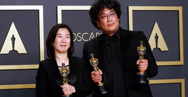 Bong Joon-ho's seething satire of economic privilege and class disparities became the first non-English language film to win Best Picture in the Academy Awards' 92-year history Sunday, also walking away with the night's largest Oscars haul.