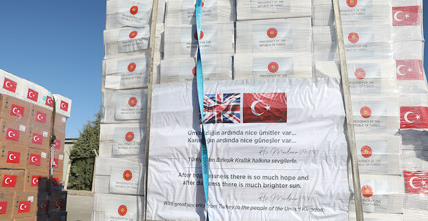 The medical aid supplies also carried on a message for the people of the U.K., saying: "After hopelessness, there is so much hope and after darkness, there is the much brighter sun. Rumi." The aid package carried to the U.K. by Turkey includes protective masks and overalls.