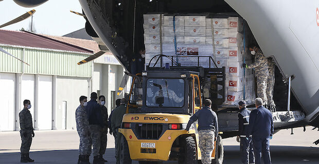 A Turkish military cargo plane carrying medical supplies for use against the coronavirus pandemic departed on Friday for the U.K. "At the direction of President Recep Tayyip Erdogan, Turkish Armed Forces aircraft that will transport to United Kingdom the medical aid supplies prepared by Turkey’s Health Ministry to be used in the fight against COVID-19 has departed Etimesgut/Ankara," the Turkish Defense Ministry said on Twitter.