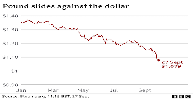 A weaker pound also makes imports and goods priced in dollars, such as oil, much more costly and risks fuelling price rises at a time when UK inflation is at its highest for 40 years.