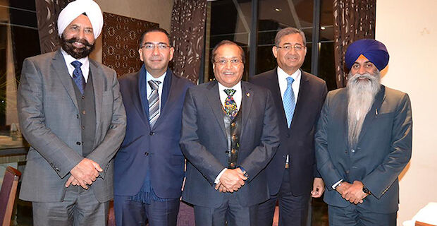 The President of The British Sikh Association Mr Amarjit Dassan, Deputy Chairman of the Hashoo Group Mr Murtaza Haswani, Chairman of The British Sikh Association Dr Rami Ranger CBE, Ambassador Mr Hameed Kidwai and The President of Sri Guru Singh Sabha Gurdwara