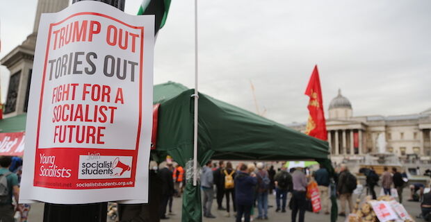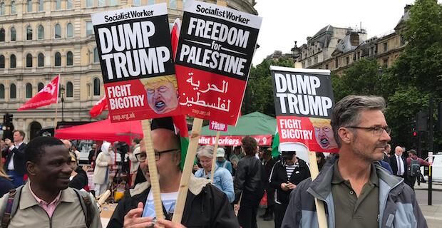 Tens of thousands of people filled London’s central Trafalgar Square on Tuesday to protest the state visit to the U.K. by U.S. President Donald Trump. The groups have gathered from the early hours before the president was due a visit to Prime Minister Theresa May at Dawning Street. Trump arrived at the government offices under heavy police presence as protesters were kept well away from his convoy. Thousands of protesters carrying anti-Trump banners, placards and posters later on walked on to the entrance of 10 Dawning Street, however, they failed to reach it due to a strict police cordon around it.