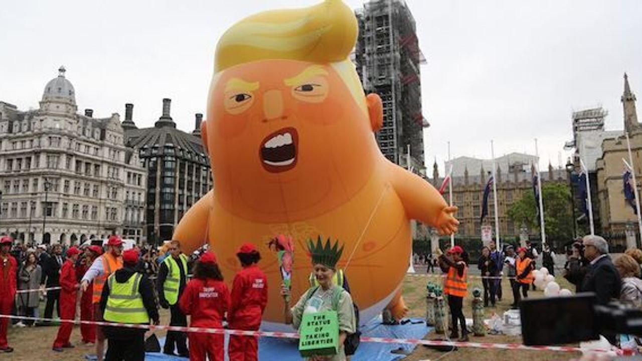 The entrance to Whitehall was closed by police vans, horses and metal barriers as more people also gathered in the Parliament Square. A 20-foot baby Trump blimp was inflated and floated in the square in a location where Trump’s armored vehicle had to pass to arrive for the meeting with May. The protests are expected to continue all day with more people joining them. Labour Party leader and some other politicians are expected to join the protest at the Parliament Square Monday afternoon. Trump and May to speak at a joint news conference after their meeting where they will speak about the future trade partnership between the U.K. and the U.S. in the afternoon.