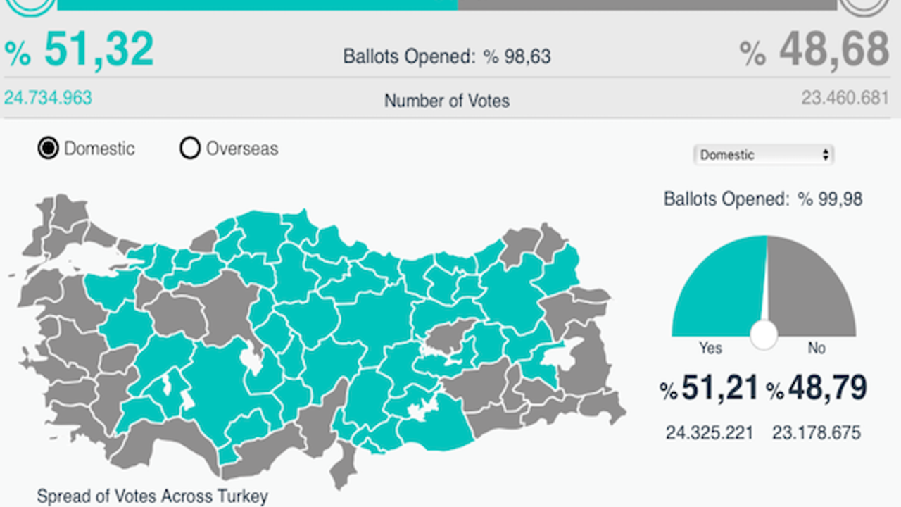 AVRUPA TIMES/LONDON-Latest news, The referendum has divided Turkey - a country facing no shortage of problems. Turks have backed President Recep Tayyip Erdogan's call for sweeping new presidential powers, partial official results of a referendum indicate.With about 98% of ballots counted, "Yes" was on about 51.3% and "No" on about 48.7%.Erdogan supporters say replacing the parliamentary system with an executive presidency would modernise the country.Opponents have attacked a decision to accept unstamped ballot papers as valid unless proven otherwise.The main opposition Republican People's Party (CHP) is already demanding a recount of 60% of the votes."Yes" vote could also see Mr Erdogan remain in office until 2029.The president has now called the head of the AK Party (AKP) he co-founded and other party leaders to congratulate them on the victory, the Anadolu news agency said.Avrupa Times