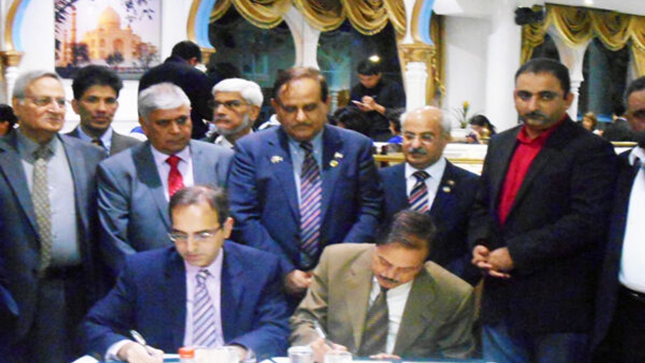 "UK Pakistan Chamber of Commerce and Industry (UKPCCI) signed a Memorandum of Understanding with Rawalpindi Chamber of Commerce and Industry in London on 16th August, 2014 and agreed to work with close cooperation and coordination to boost trade and investment. Mr. Abdul Majeed Shaheen, President of UKPCCI termed the MoU as milestone in cooperation between the two chambers. He said Pakistan is in dire need of investment from foreign investors to overcome the problem of power shortage and unemployment. President of the Rawalpindi Chamber of Commerce and Industry Mr. Shamil Daud Arain termed the MoU a pleasant occasion of cooperation between RCCI and UKPCCI. He further stated that with the cooperation of UKPCCI, RCCI will explore new opportunities for the Pakistani goods in the UK Market. Mr. Arain also expected that the other Chamber will also extend their cooperation for boosting exports from Pakistan.