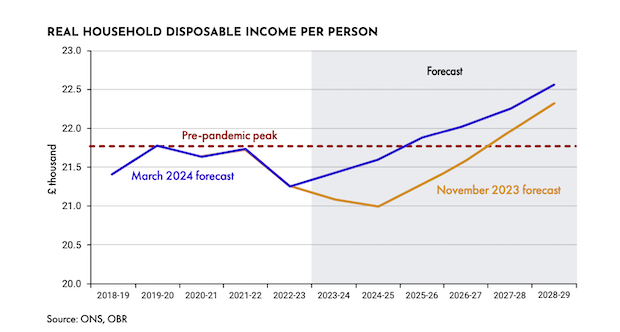 According to the OBR, the Chancellor had financial headroom of around £9bn (compared to £13bn in November), which the OBR said was “a tiny fraction of the risks around any forecast”.
