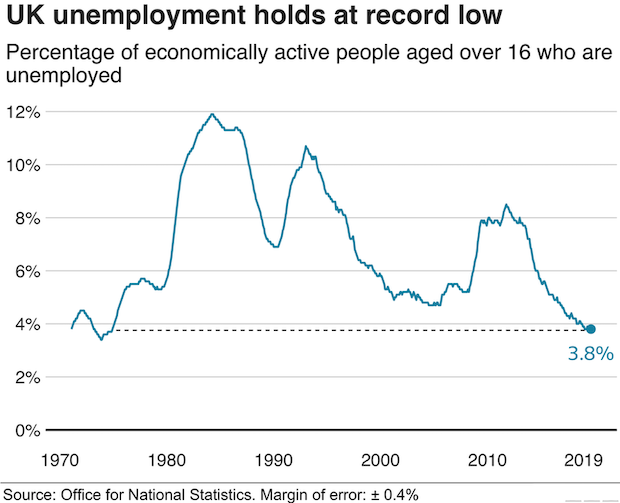 Chancellor Sajid Javid said: "There's talent up and down this country - three-quarters of employment growth in the last year has been outside London and the South East. "I'm looking forward to getting Brexit done and unleashing Britain's potential, levelling up opportunity across the country." Tej Parikh, chief economist at the Institute of Directors, said: "The UK's jobs boom continues to be a big plus point for the economy, but it is slowly losing momentum.