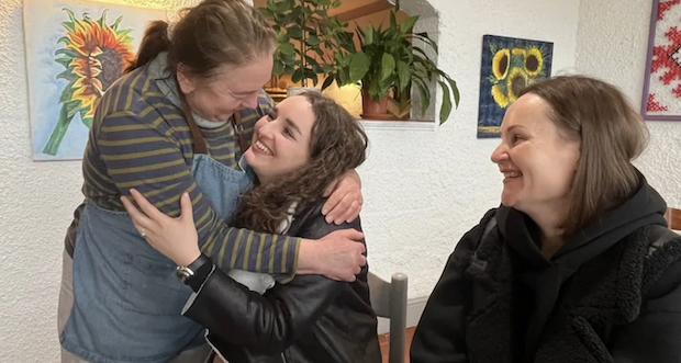 Since arriving here on 18 March 2022, Svitlana and Hanna, 19, have been living with a couple they call their "second family" under the government's Homes for Ukraine scheme, in a village near Hull in East Yorkshire.Though at pains to stress they will forever be grateful to their "amazing" hosts and the UK, Svitlana and Hanna say they need independence after being forced to rely on the generosity of others for nearly two years.Svitlana, a hair stylist before the war, and Hanna work in a pub, both pot-washing.Hanna combines her work with studying at East Riding College.Lena Sutherland, left, comforts Hanna Nakonechna as mum Svitlana looks onLena Sutherland, left, comforts Hanna Nakonechna as mother Svitlana looks on I met them in Lena's Ukrainian Kitchen, a cafe in Hull city centre, where many who fled the war come for a taste of home.As well as the UK cost of living crisis, mother and daughter say they are missing family who remain in Ukraine.Over coffee and a plate of mlyntsi - a type of pancake made with stewed apples - Svitlana and Hanna tell me they are aware of the risks associated with returning to Ukraine.Neither will forget the panic and destruction that arrived with the opening salvos of the conflict, as many expected Kyiv to be overrun.