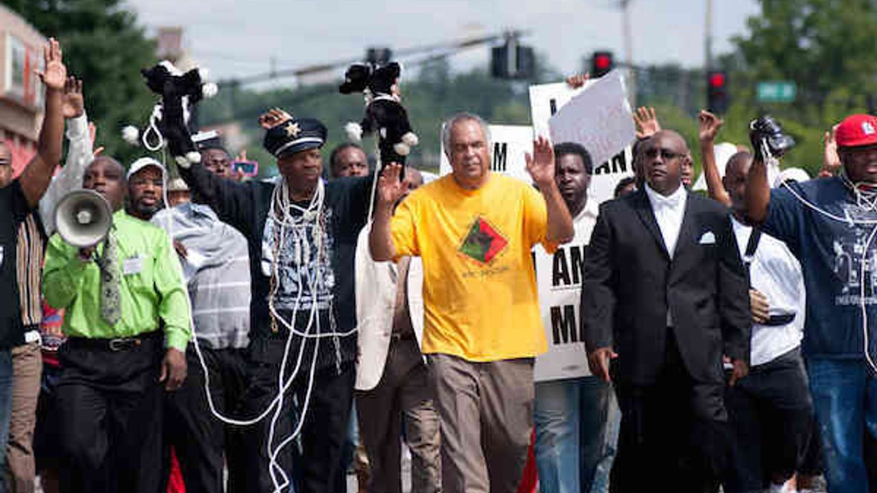 US - Demonstrators march on Ferguson Police Department