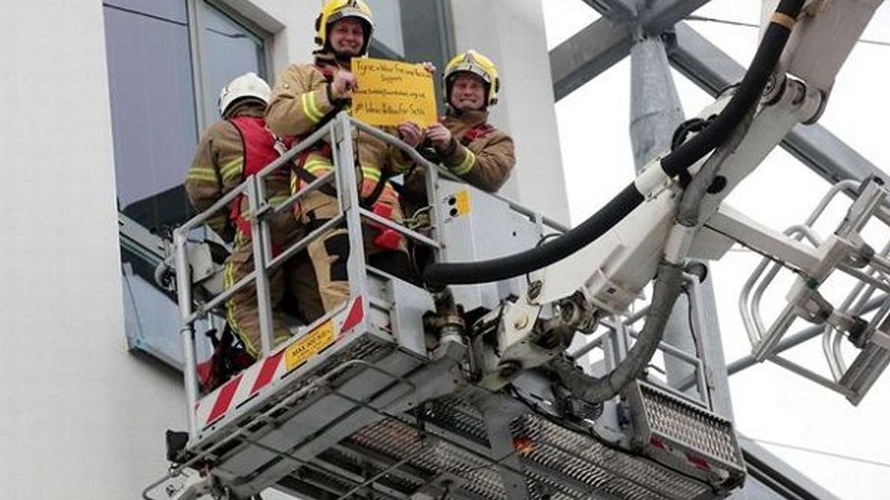 Firefighters surprised a young bone marrow transplant patient with a visit to his hospital room - using a hydraulic platform. Fireman Sam loving five-year-old Seth Lane is undergoing treatment in a hospital’s sterile, germ-free Bubble Unit while he awaits an operation that doctors hope will kick start his immune system. And, while thousands of people sent messages of support and tweeted pictures using the hashtag #WearYellowForSeth today, crews from Tyne and Wear Fire and Rescue Service went one better. (www.mirror.co.uk)