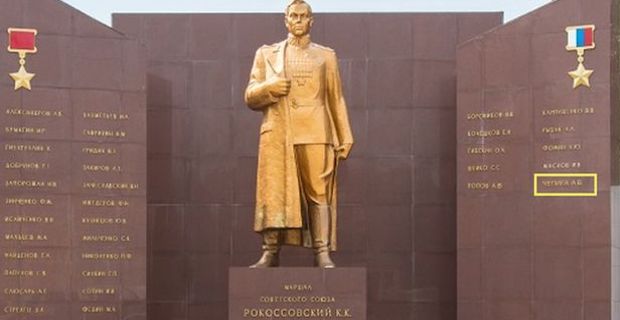 Image captionColonel Chepiga as the last name on the Gold Star honour list on the memorial wall of the Far Eastern Military Command School