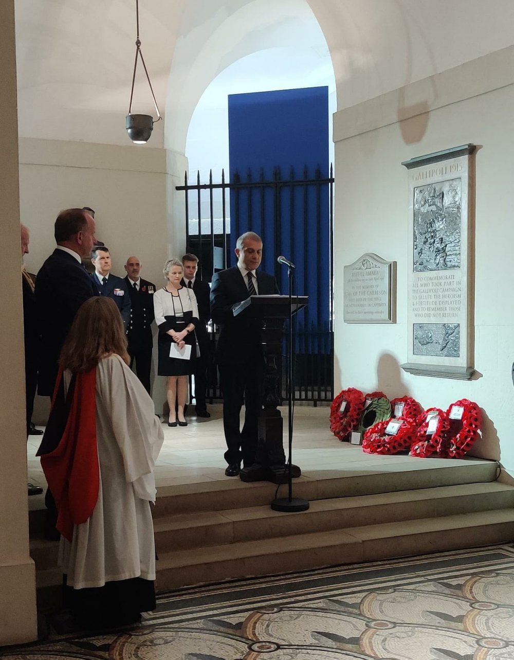 Turkey's UK Air Attache, Group Captain Serkan Virlan said: "Dear Guests: we are gathered here in front of the fallen, to remember them and pay our gratitude for their sacrifices. We shall remember them not only to recognise their sacrifice but also to remind ourselves and teach our children how horrible wars are. Most unfortunate human history is written with conflicts and human losses.