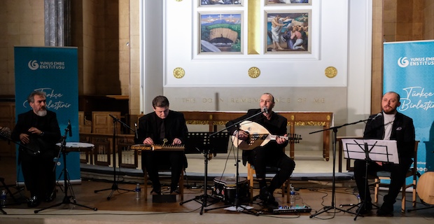 As the holy month of Ramadan encourages deep reflection and connection, Yunus Emre Enstitüsü - London hosted an unforgettable evening at St. Mary’s Islington on March 15, 2025, titled "Mystic Sounds from Anatolia." This special concert featured celebrated artists Muhammed Recai Çiftçi on vocal and tanbur, Baha Yetkin on vocal and oud, Serdar Yılmaz on qanun, and Muammer Sağlam on percussion. Each artist brought their unique talents to the stage, integrating the rich musical heritage of Anatolia with the spiritual atmosphere of Ramadan.The concert opened with a series of pieces from the Hicaz makam, setting a contemplative tone that resonated with Ramadan's themes of spiritual introspection and devotion. The evening continued with performances in the Hüseyni and Nihavend makams, where traditional songs like "Âlemlere rahmet olan" and "Bu aşk bir bahri ummandır" captivated the audience with their lyrical beauty and emotional depth.